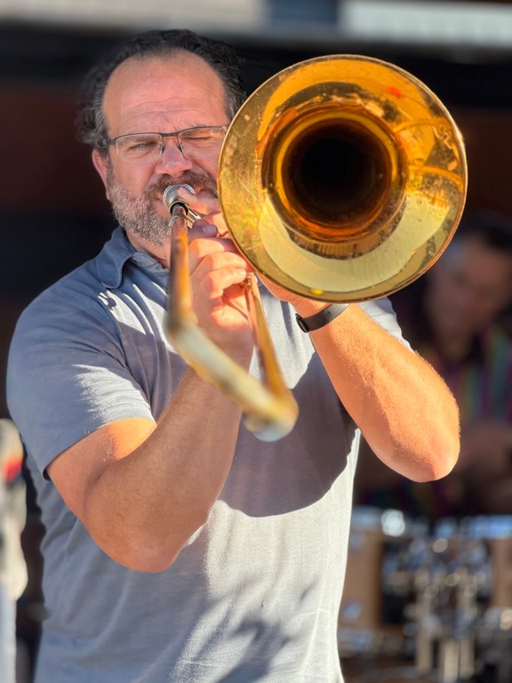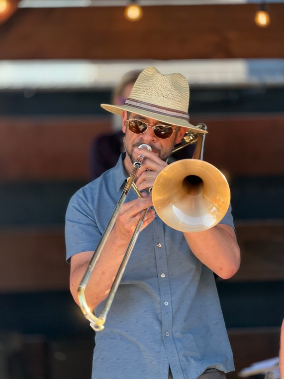 Adam is a founding member of Sinister Dexter and is glad to be playing with them again after a brief 14-year hiatus. Starting as a trombone player in bands and orchestras in 9th grade, Adam picked up trumpet after college and decided to stick with it when SinDex began, both because the band already had two great trombone players and because it's way easier to carry a trumpet around. In the rare moments when he's not busy helping raise a kid or designing voice experiences for a large tech company, he likes to arrange and occasionally compose original music.